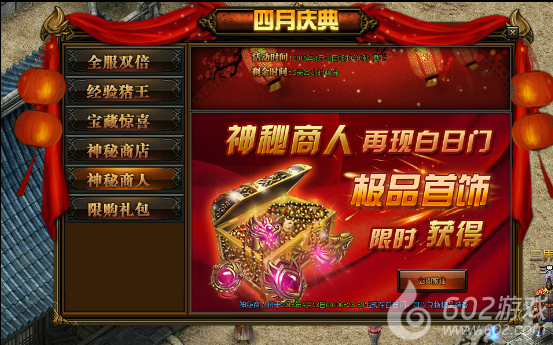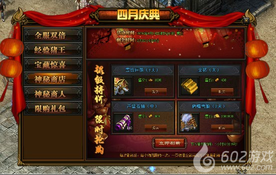 活动详情:活动期间神秘商店内会推出极品道具并以超低的价格供玩家购买,宝石、坐骑、声望、金砖、荣誉、魂珠等你来抢,玩家可直接消耗元宝、金币、礼金进行购买,每样道具只能购买一次,当一页的物品购买完后,系统会自动免费刷新一次,您也可以消耗399元宝进行刷新。