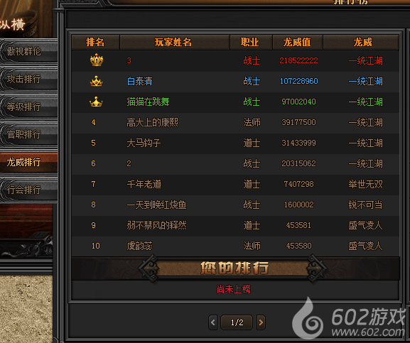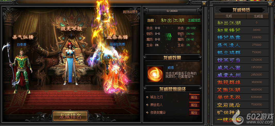1:龙威值达到条件可自动晋升龙威等级,获得属性加成
