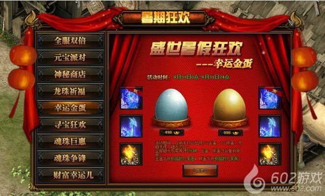 活动详情:活动期间在新手村刷新金银两种蛋,可打开获得终极坐骑,盛世神龙!金蛋每五分钟刷新一次