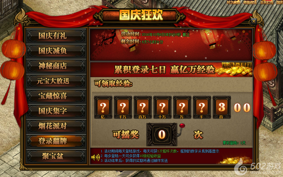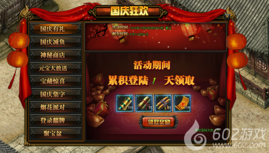 活动详情:国庆期间每日登录即可领取系统送出的大礼~不可错过哦