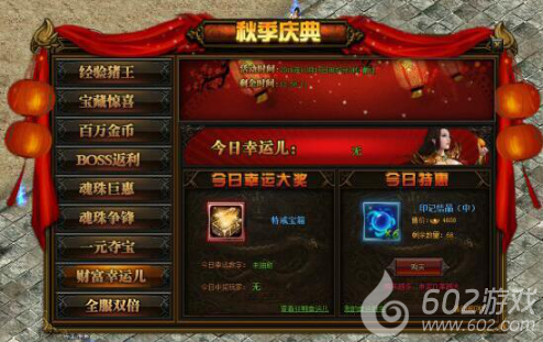 活动详情:活动期间玩家可在今日特惠里以优惠的价格购买相应的道具,每购买一次便可获得相应的一个幸运数字。系统会随机抽取一个幸运数字,每日21:00开奖,如果被系统抽到的幸运玩家就可获得今日幸运大奖,数量有限先到先得。