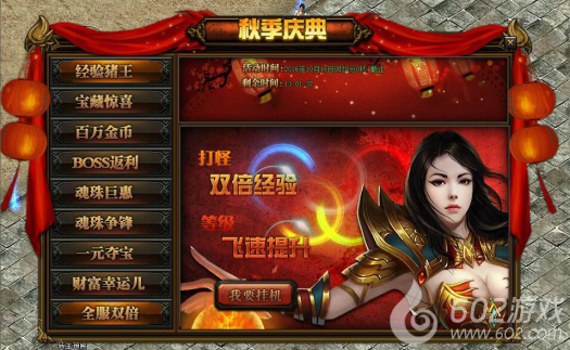 活动详情:活动期间玩家打怪挂机可获得双倍经验加成,此效果与VIP加成及经验卷轴不冲突,让您等级飞速提升。