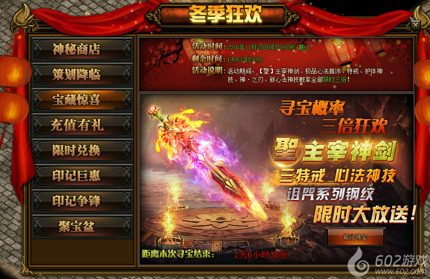 活动详情:活动期间寻宝概率限时三倍,极品道具等你来拿~
