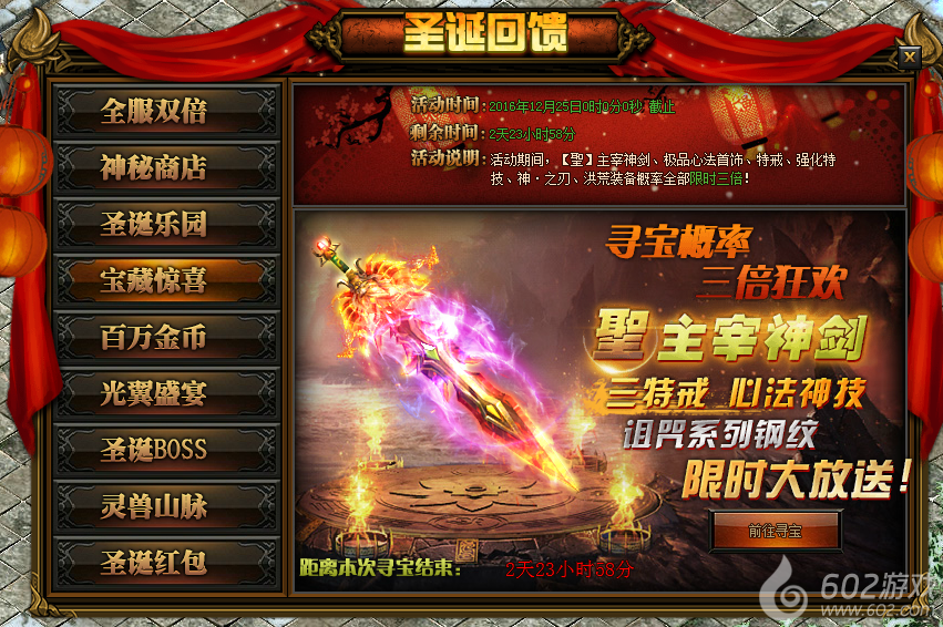 活动详情:活动期间寻宝概率限时三倍,极品道具等你来拿~