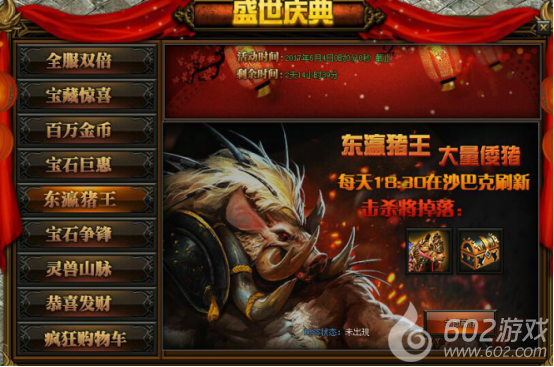 活动详情:活动期间每日18:30沙巴克会刷出猪王,攻击猪王可以获得海量奖励,更有神秘坐骑和神秘宝箱,小伙伴们不要错过哦~