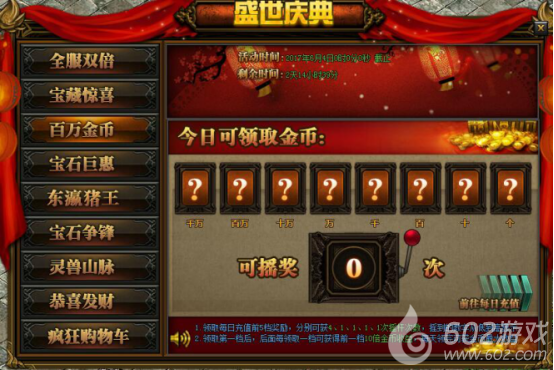 活动详情:活动期间领取每日充值5档奖励,分别可获得4、1、1、1、1次摇杆次数,摇杆的字数会从低到高显示,每日充值的档次后面一档都会高出前面10倍金币收益,如果一天5档的领完就可获得当天金币的最大收益,获得的金币将在每日0点通过邮件的方式发送给玩家