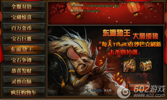 活动详情:活动期间每日18:30沙巴克会刷出猪王,攻击猪王可以获得海量奖励,更有神秘坐骑和神秘宝箱,小伙伴们不要错过哦~