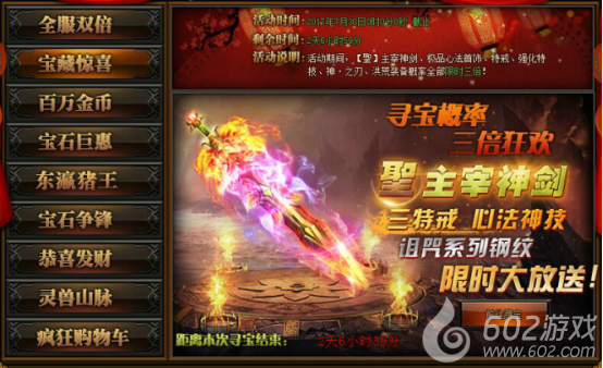活动详情:活动期间寻宝概率限时三倍,极品道具等你来拿~