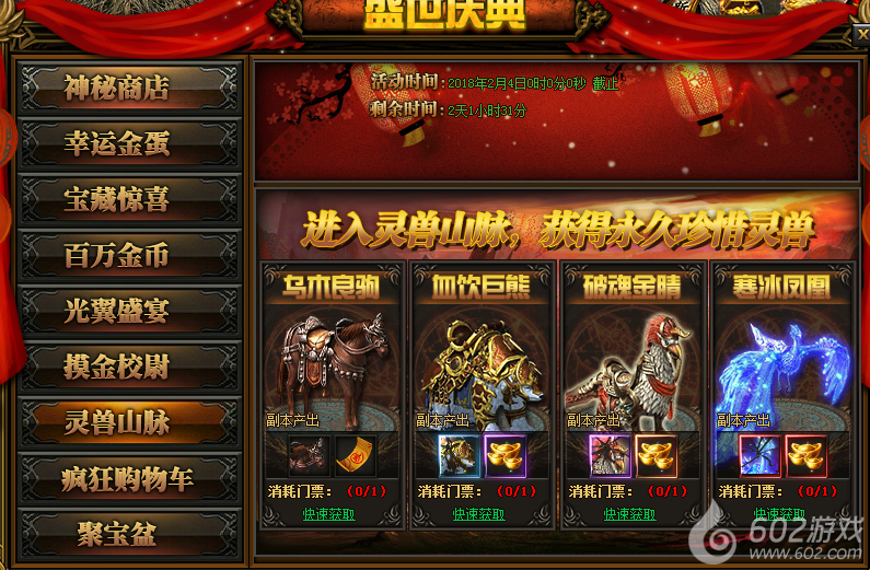 活动详情:活动期间进入灵兽山脉,获得永久珍惜灵兽,快快行动吧~